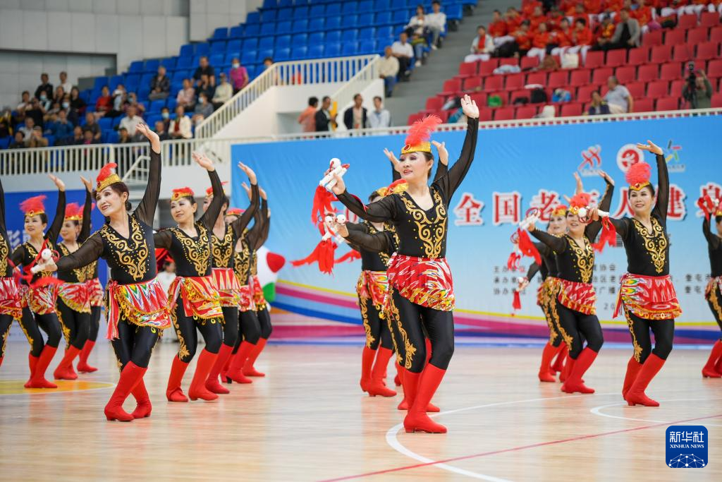 集体项目,2025年全国老年人健身秧歌交换勾当正在新疆维吾尔自治区奎屯市体育馆揭幕。表演者一招一式神韵十...